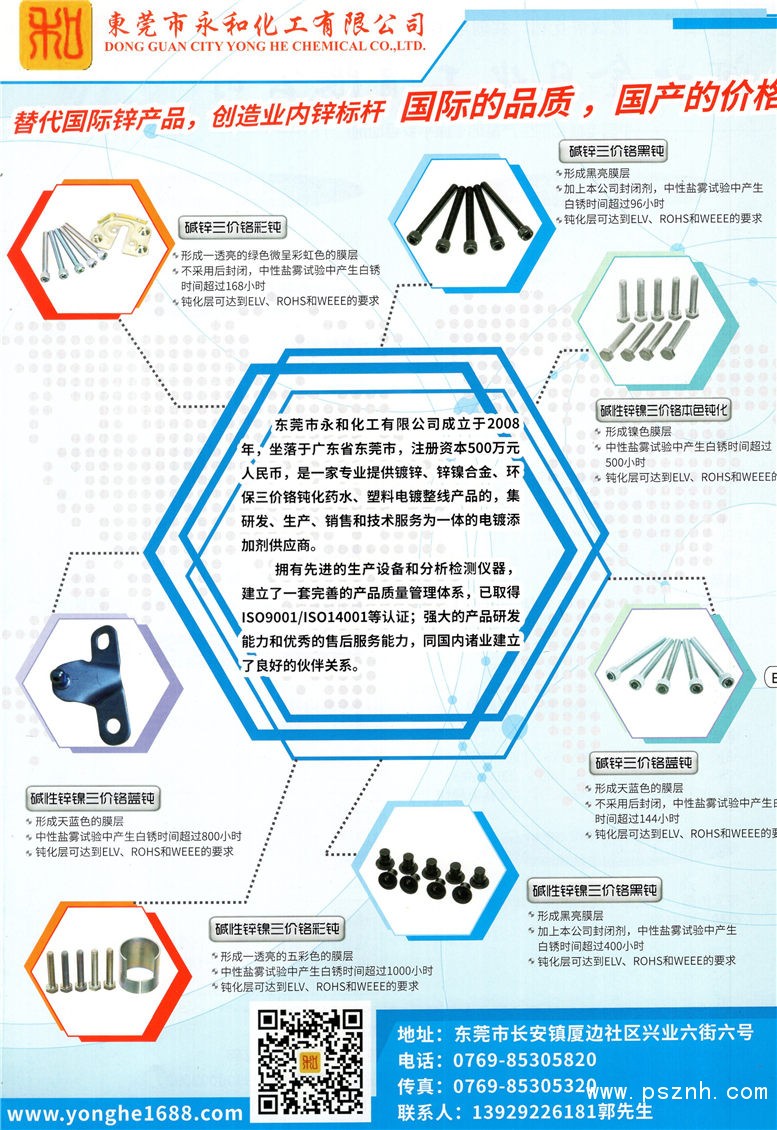 東莞市永和化工有限公司 鍍鋅電鍍添加劑_鋅鎳電鍍添加劑_塑膠電鍍添加劑點擊:551 查看原圖![]() ![]() ![]() 東莞市永和化工有限公司