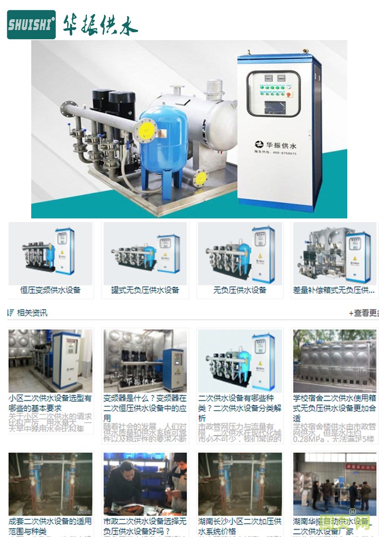 湖南華振供水設備有限公司-一家集水泵、二次供水加壓設備、智能箱泵一體化、不銹鋼水箱的研發,生產、銷售、安裝、服務于一體的高新技術企業點擊:479 查看原圖![]() ![]() ![]() 簡介: