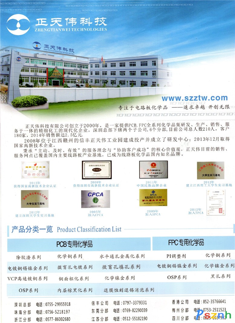 深圳市正天偉科技有限公司 PCB專用化學品 FPC專用化學品