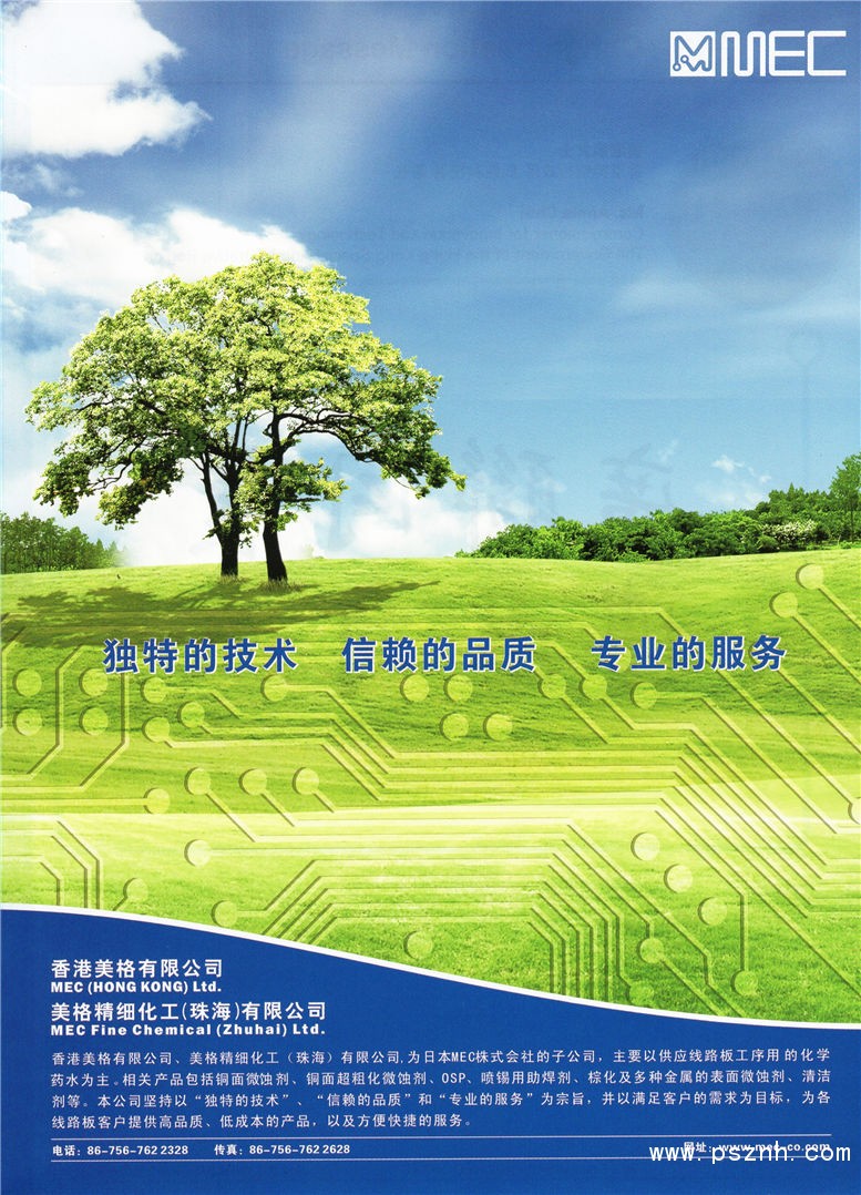 美格精細化工(珠海)有限公司 銅面微蝕劑_OSP_噴錫用助焊機劑點擊:839 查看原圖![]() ![]() ![]() 公司地址: