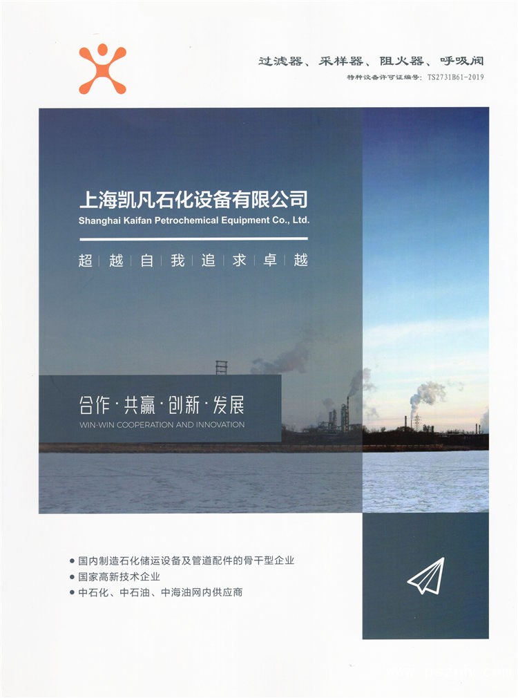 | 公司簡介: | 上海凱凡石化設備有限公司創建于2005年,年生產各類產品5000套/件,是國內制造石化儲運設備及管道配件的優秀企業。 公司核心產品有阻火器、呼吸閥、精密過濾器、視鏡、浮動出油裝置等,是中國石化集團總公司、中國石油天然氣集團總公司、原化學工業部入網供應商。近年來承接中石油蘇丹項目、伊拉克米桑油庫、中亞哈管道項目、中石化阿爾及利亞項目、益海嘉里氯堿項目、國電英力特醋酸/BDO/甲醇項目、大慶石油大乙烯項目、恒力石化大連/營口PTA項目、翔鷺石化漳州古雷PX/PTA項目、神華煤化工項目,山東煙臺萬華寧波MDI項目和各大設計院,各化建公司的承包項目,并出口哈薩克斯坦、阿爾及利亞、越南,澳大利亞,意大利等,獲得客戶的一致認可和好評。 上海凱凡石化擁有領先的產品制造工藝,融合多年制程上的研發經驗,致力于為全球工業領域提供經濟、專業的過濾解決方案和石油石化儲運設備。同時,公司構建了完備的經營體系,涵蓋戰略、財務、人力、運營等管理范疇。公司嚴格執行ISO9001國際質量體系,并在全國設有多個項目部,可為客戶提供完善的一體化服務。 未來,公司將秉承“超越自我,追求卓越”的經營理念,以專業、合作的服務價值觀,繼續為客戶提供研發、設計、制造、安裝、運行維護在內的一整套產品方案,同時不斷拓展于行業科技的研發與創新,以滿足世界流體工業的多元化發展。