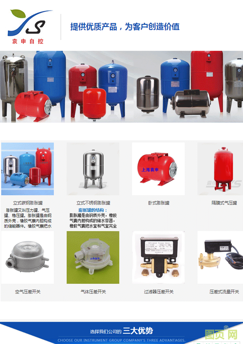 上海袁申自控設備有限公司-膨脹罐,壓力罐,穩壓罐,隔膜式氣壓罐,無負壓穩流罐,壓差開關點擊:406 查看原圖![]() ![]() ![]() 簡介: