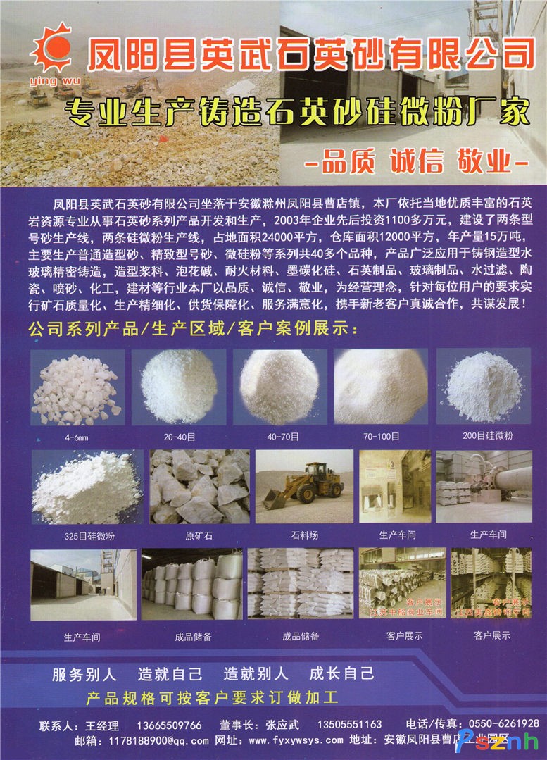 | 公司名稱: | 鳳陽縣英武石英砂有限公司 | ||