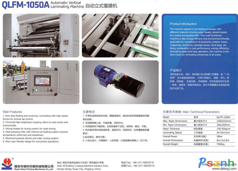 瑞安市德科印刷機械有限公司 _半自動1300立式_半自動立式_立式全自動_鏈刀型立式全自動_預涂膜全自動點擊:1143 查看原圖![]() ![]() ![]() 瑞安市德科機械有限公司