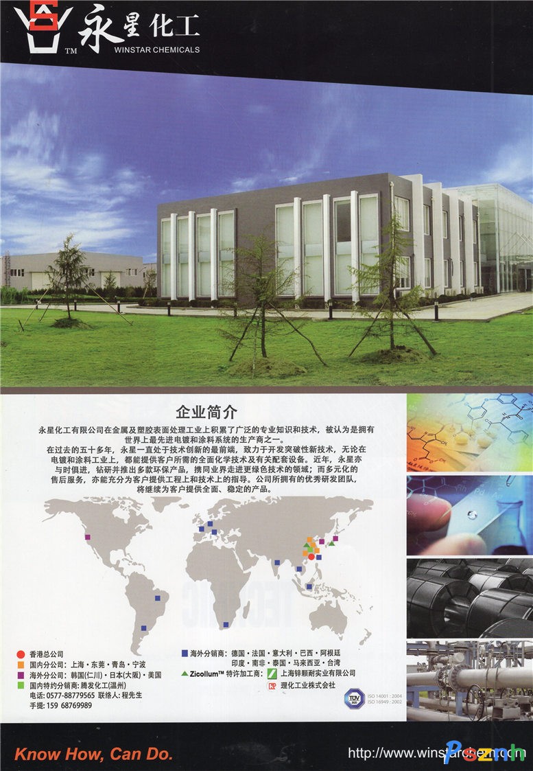 香港永星化工有限公司_電鍍添加劑_涂料_清洗劑_電鍍設備點擊:1253 查看原圖![]() ![]() ![]() 永星化工(上海)有限公司 - 東莞分公司