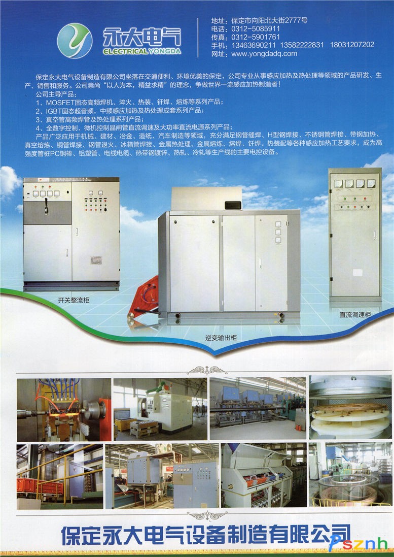 保定永大電氣設備制造有限公司_固態高頻焊機_加熱及熱處理成套系列_真空管高頻焊管點擊:1926 查看原圖![]() ![]() ![]() 公司地址:保定市向陽北大街2777號