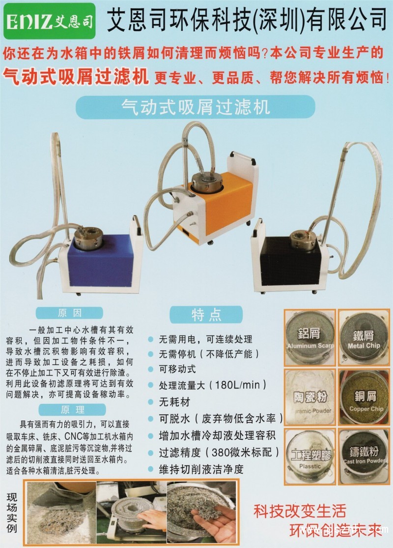 艾恩司環??萍迹ㄉ钲冢┯邢薰? 氣動式吸屑過濾機 氣動式油水分離器 移動式油水分離器點擊:803 查看原圖![]() ![]() ![]() 艾恩司環保科技(深圳)有限公司