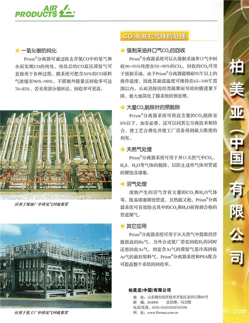 柏美亞(中國)有限公司 氮氣膜分離器 工藝氣體膜分離(氫) 脫水膜分離器點擊:681 查看原圖![]() ![]() ![]() Permea China Limited, 60 Jinshajiang Road, Yantai EDTZ, Shandong. Tel: 0535-2165333.