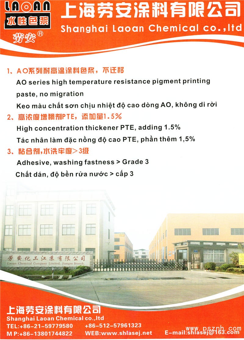 上海勞安涂料有限公司 TH系列造紙專用著色劑 陽離子接枝劑 染色粘合劑,點擊:1257 查看原圖![]() ![]() ![]() 電 話:0086-512-50150986