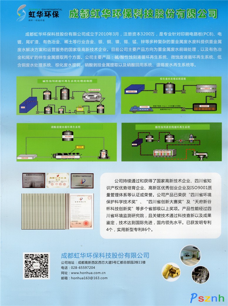 成都虹華環(huán)保科技股份有限公司 PCB蝕刻液 銅廢水處理點擊:1345 查看原圖![]() ![]() ![]() 公司名稱:成都虹華環(huán)保科技有限公司