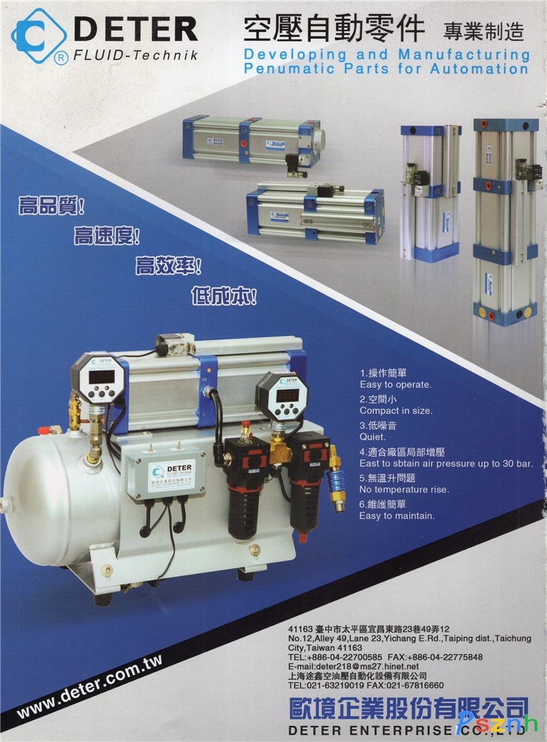 上海途鑫空油壓自動化設(shè)備有限公司 歐境高壓氣體配重系統(tǒng),高壓氣體主軸配重系統(tǒng),打缸,氣體增壓泵,氣液增壓泵,點(diǎn)擊:1781 查看原圖![]() ![]() ![]() 臺中市太平區(qū)宜昌東路23巷49弄12號 / 電話:04-22700585 傳真:04-22775848 /deter218@ms27.hinet.net