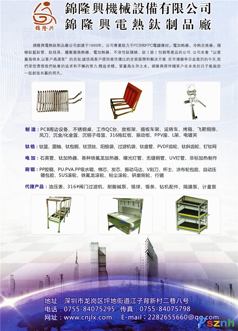 線路板電鍍掛具_PCB耗材_不銹鋼制品_鈦制品-深圳市錦隆興五金制品有限公司點擊:2432 查看原圖![]() ![]() ![]() 地址:深圳市坪地江子背新村二巷八號