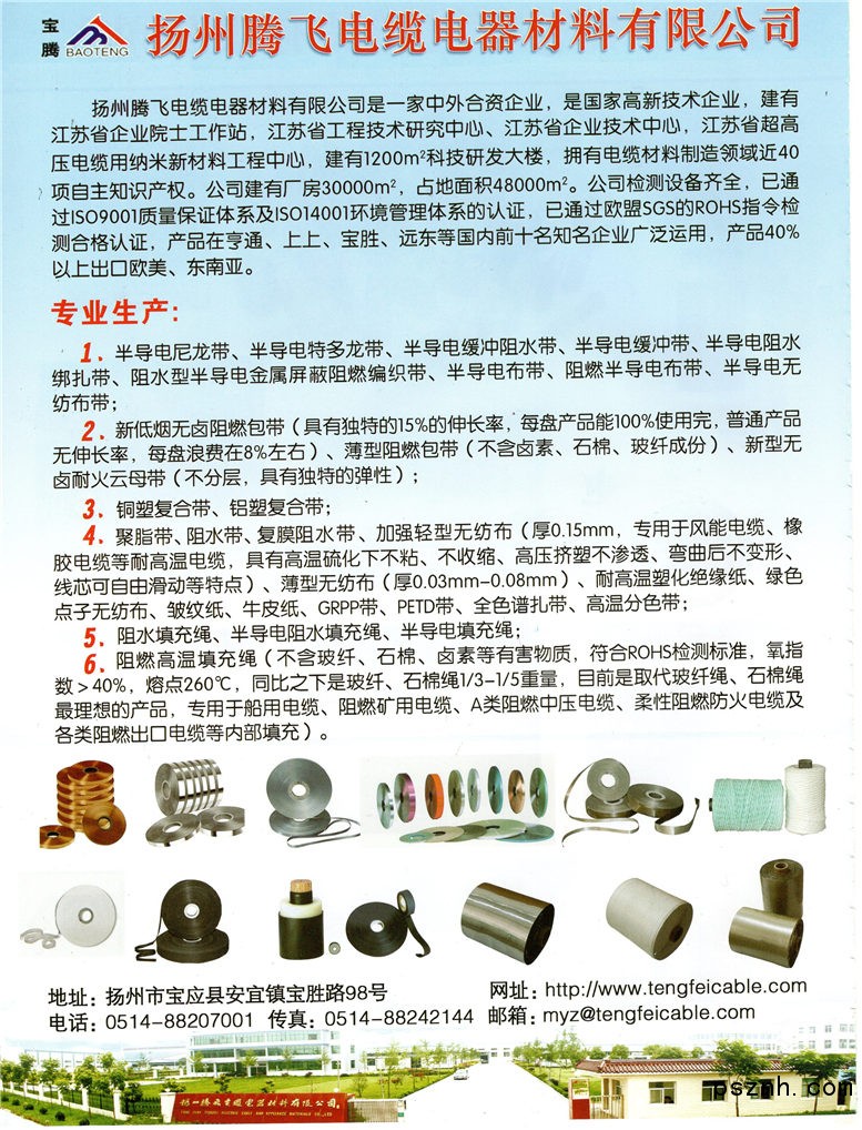 揚州騰飛電纜電器材料有限公司 半導電尼龍帶 半導電特多龍帶 半導電緩沖阻水帶點擊:1807 查看原圖![]() ![]() ![]() 電話:0514 - 88207001