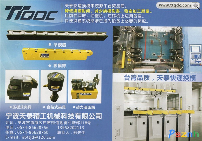 寧波天泰機電技術有限公司 注塑機快速換模系統 壓鑄機快速換模系統 換模臺車點擊:1516 查看原圖![]() ![]() ![]() 聯系人:鄭先生