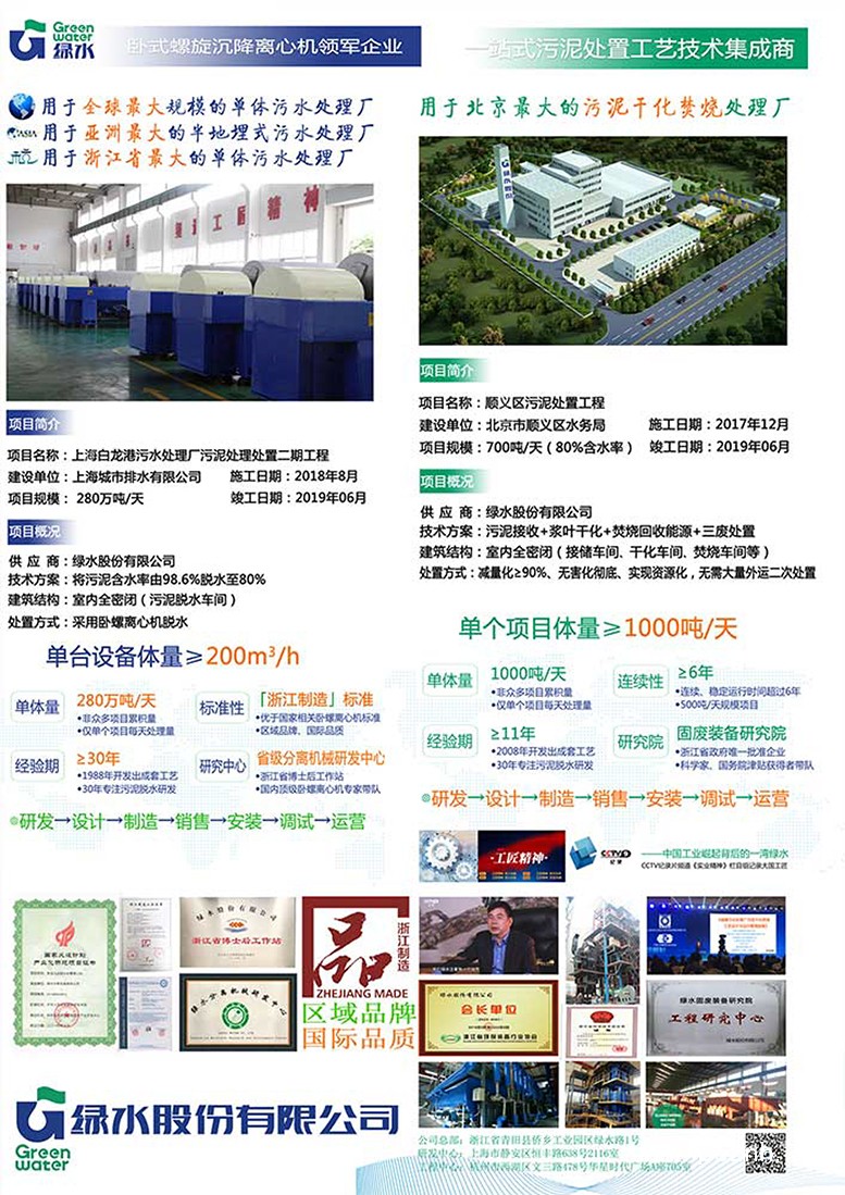 | 經營范圍: | 離心機、污泥干化焚燒發電系統設備、PE管式過濾機、細格柵過濾機、螺旋壓榨機、濃縮脫水一體機、環保成套設備制造、銷售,國家準許的貨物與技術自由進出口貿易;普通貨運;環保工程總承包,土木工程建筑施工;軟件研發;非金融類投資。 | ||