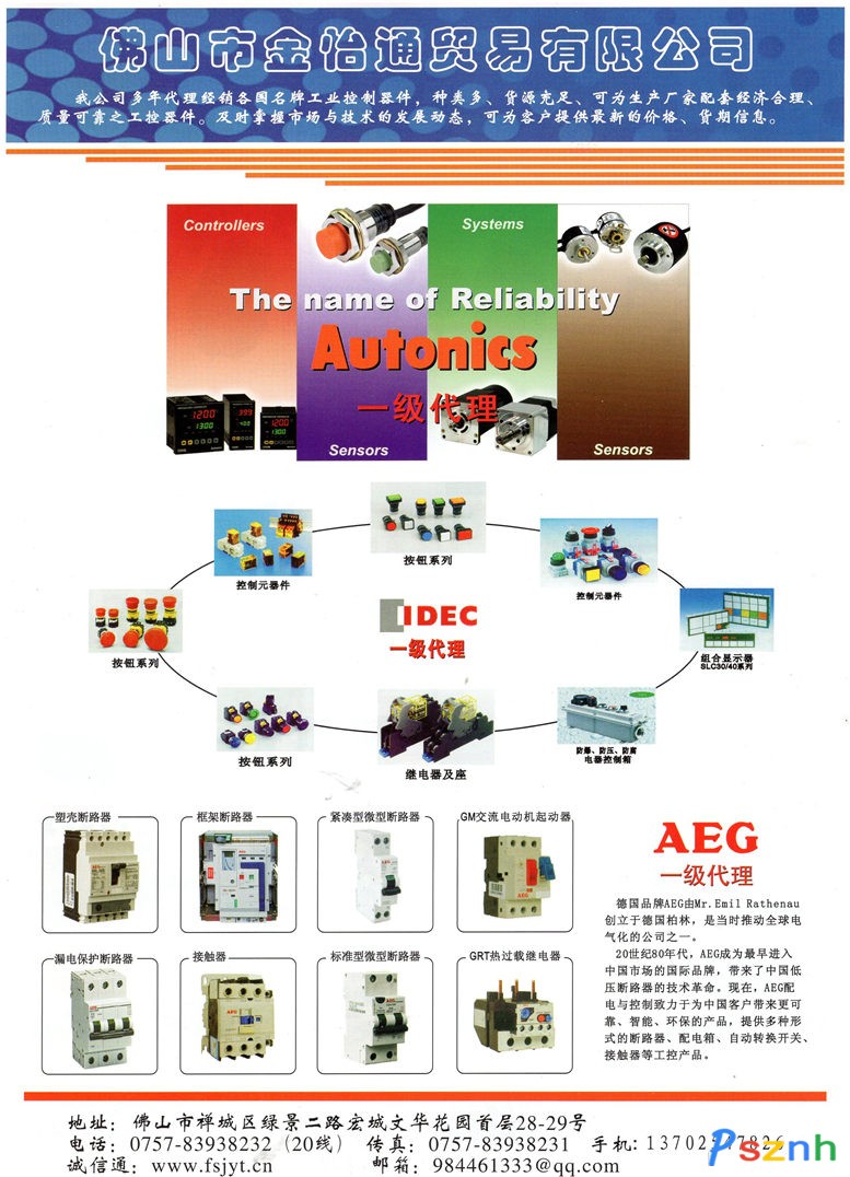 | 經(jīng)營范圍: | 經(jīng)銷:工業(yè)控制電器,機械,五金配件,電子電器,金屬材料,塑料制品。〓(依法須經(jīng)批準(zhǔn)的項目,經(jīng)相關(guān)部門批準(zhǔn)后方可開展經(jīng)營活動)〓 | ||