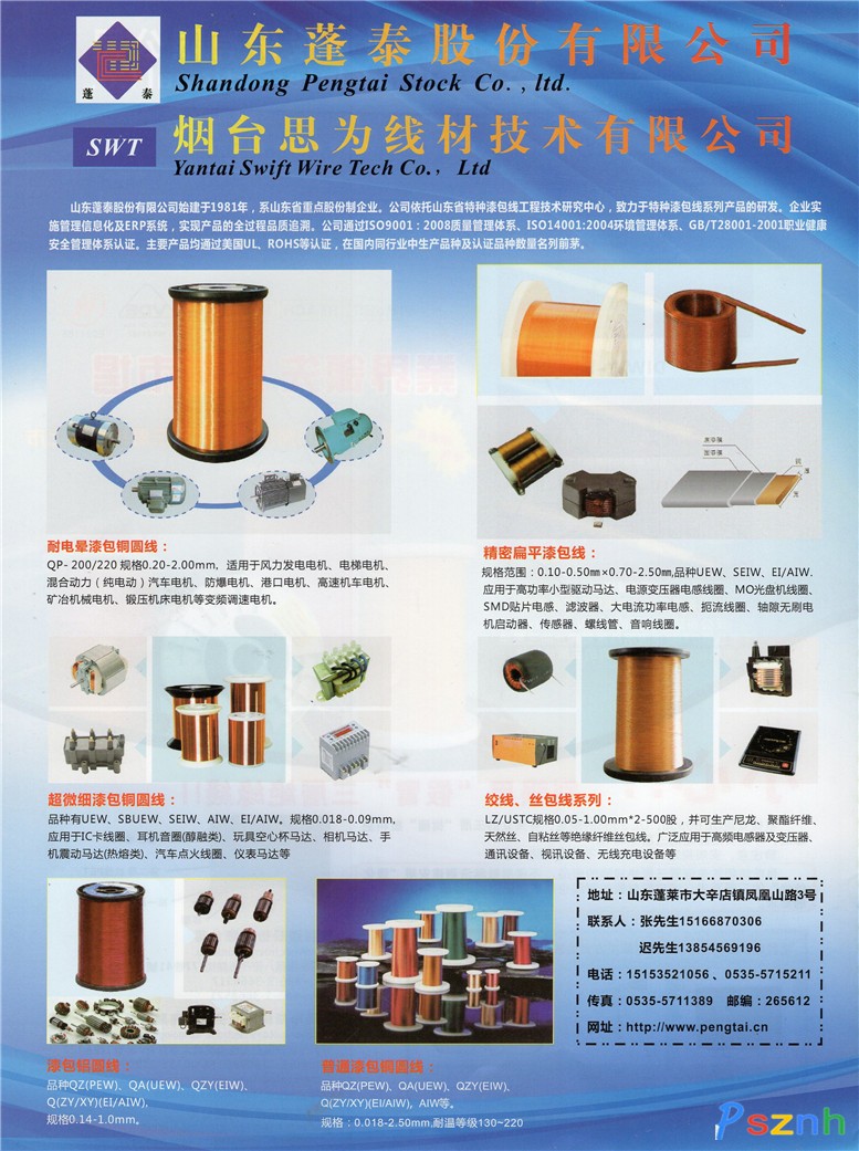 山東蓬泰股份有限公司 特種漆包線 鍍錫銅線 鍍錫銅包鋼線點(diǎn)擊:1146 查看原圖![]() ![]() ![]() 山東蓬泰股份有限公司