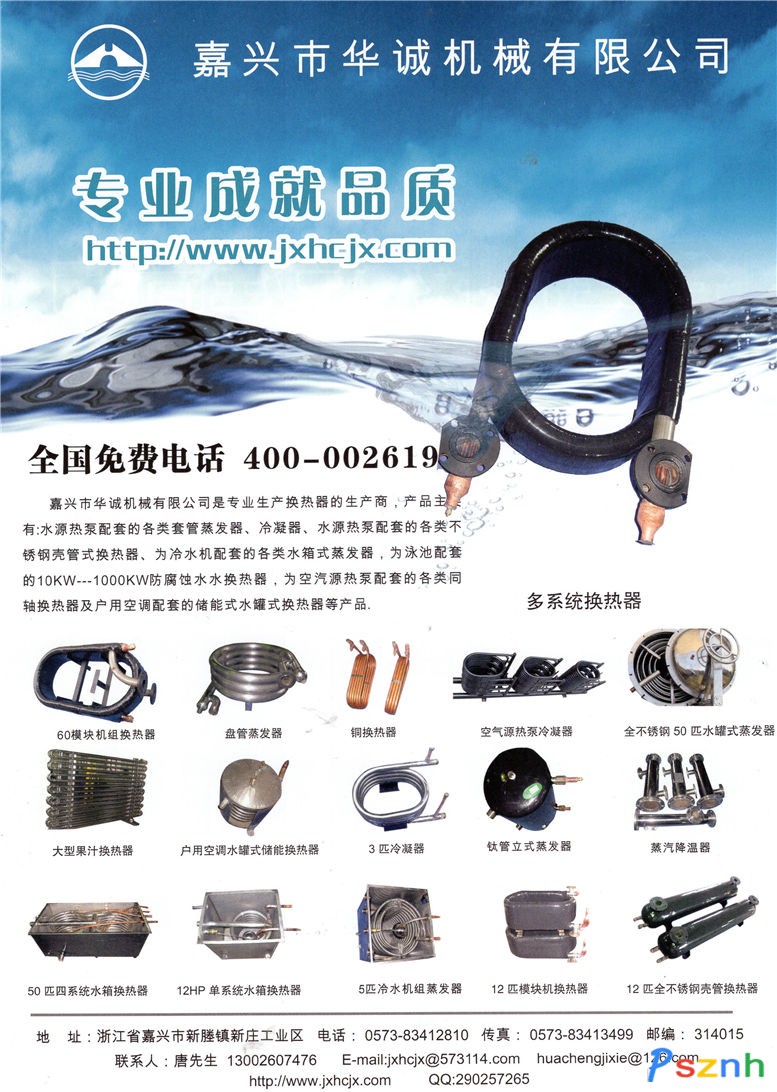 嘉興市華誠機械有限公司 不銹鋼套管換熱器 中小型空調配套的儲能水罐換熱器點擊:765 查看原圖![]() ![]() ![]() 服務電話: