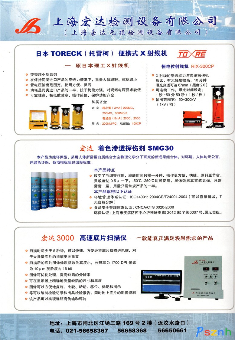 電話:021-56658367/8/9 021-56650661 傳真:021-56650662 郵箱:shhd_ndt@126.com Q Q:871235875 網址:www.hd-ndt.com 地址: 中國 上海市閘北區江場三路169號2樓 |