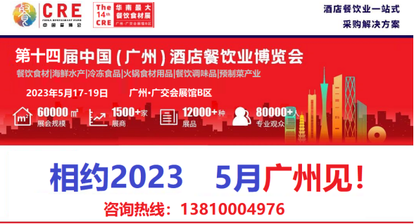 搶占新商機,布局新規(guī)劃,采購新產(chǎn)品,前瞻新趨勢,優(yōu)享新體驗,就在2023年5月17日-19日廣州·廣交會展館B區(qū),2023第十四屆中國(廣州)酒店餐飲業(yè)博覽會!2023餐飲業(yè)年度盛會,歡迎您的報名參與!