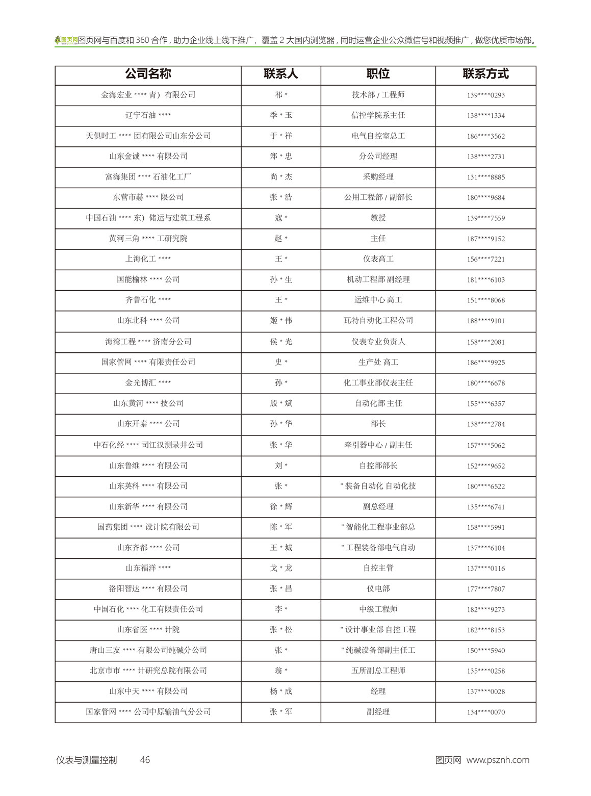 石化與制藥企業(yè)部份郵寄儀表采購商錄2022年第六期《儀表與測量控制》,2022年全年六刊已出刊完畢。現(xiàn)將《儀表與測量控制》雜志2022年第六期現(xiàn)將電子刊發(fā)您。您留下您的聯(lián)系地址聯(lián)系人,近期的紙質(zhì)版將給您免費寄過來(急需要紙刊需到付)內(nèi)面有部份郵寄儀表采購商錄!