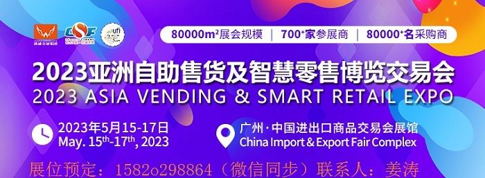 2023第十屆亞洲自助售貨及智慧零售博覽交易會,將于2023年05月15-17日,廣州·廣交會展館隆重舉辦,規劃面積80000平方米,預計將吸引超過700家展商參展,專業觀眾將達80000人次。聚焦自助售貨、智慧零售、商業設備等行業領域,服務于全球采購商、經銷商、運營商和參展商。