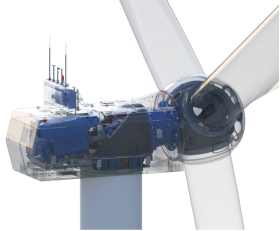該產品由風電科技公司自主研發,采用成熟可靠的上風向、水平軸、集成主軸齒輪箱、變速恒頻雙饋發電技術。攻克了風電場大風期風機限功率運行造成風機槳距角大幅度波動,引發風機振動故障頻發的技術難題,提出一種風電多目標最優響應控制方法。攻克了陸上風機功率等級及風輪直徑不斷增大造成大湍流條件下風機極限載荷超載及頻發啟停機引發風機疲勞壽命損失的技術難題。攻克了風機功率特性驗證需要新建測風塔造成額外增加風機成本投入問題,提出一種基于風功率預測測風塔的風電機組功率曲線驗證方法。