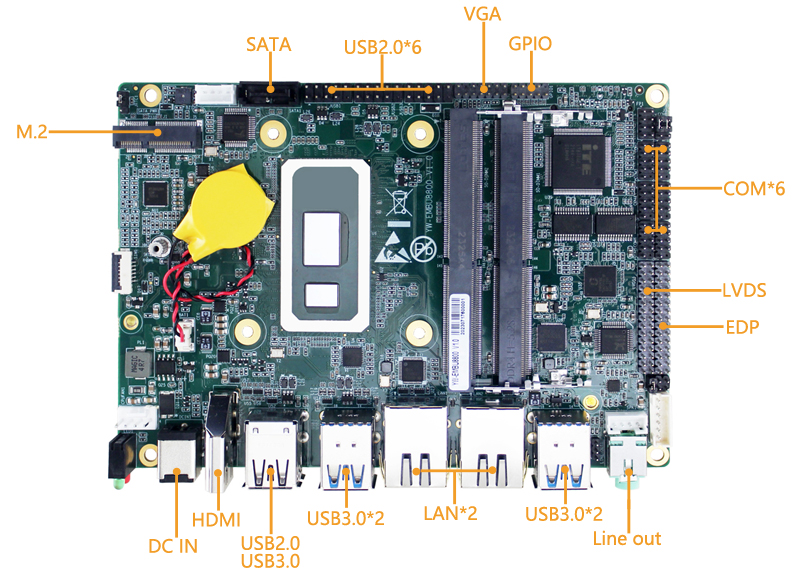 YW-EMBU8800支持5個USB3.0、7個USB2.0、6個COM,可輕松實現多設備連接;板載1個Intel?I219-V、1個Intel?I226-V網口,滿足數據的快速采集與高帶寬傳輸;配備兩個 M.2插槽(E和M key)和一個mini PCIe 插槽,支持4G/WIFI/SSD NVME等擴展,是各種嵌入式應用的理想選擇。
