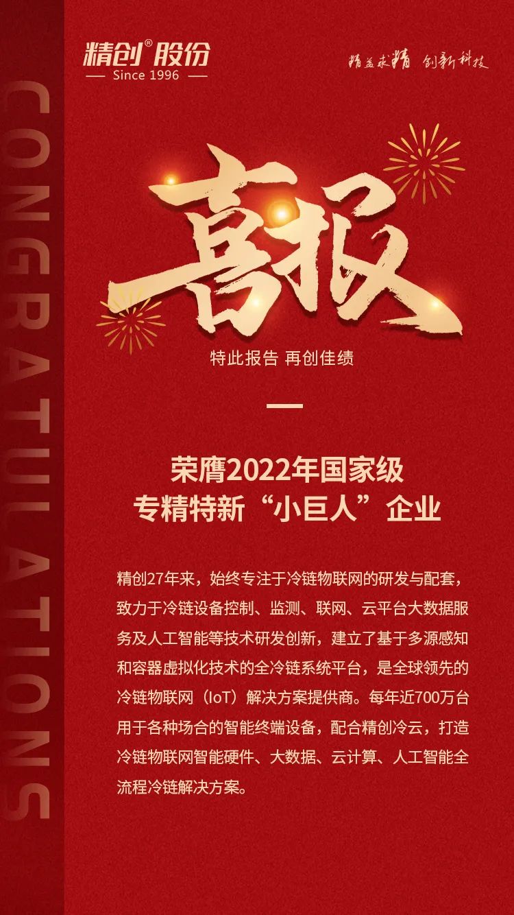 近日,工業和信息化部第四批國家級專精特新“小巨人”企業名單公示出爐,江蘇省精創電氣股份有限公司成功上榜。 專精特新“小巨人”企業,是指專注于細分市場、聚焦主業、創新能力強、有較強品牌知名度、市場占有率高、成長性好的企業。身懷絕技卻默默無聞,獨占鰲頭又是隱形冠軍,這或許就是專精特新“小巨人”的特征。 在當前經濟社會發展形勢下,國家級專精特新“小巨人”企業在引領實體經濟,特別是制造業做實、做強、做優,提升產業鏈、供應鏈穩定性和競爭力方面處于舉足輕重的地位,在穩定國家經濟社會發展方面發揮了中流砥柱的作用。 近年來,精創積極響應國家、省、市關于“專精特新”企業的相關決策部署,此次入選國家級專精特新“小巨人”企業,標志著精創得到了國家級層面的肯定,更是表明國家對企業技術創新、市場開拓和品牌建設的肯定。 精創27年來,始終專注于冷鏈物聯網的研發與配套,致力于冷鏈設備控制、監測、聯網、云平臺大數據服務及人工智能等技術研發創新,建立了基于多源感知和容器虛擬化技術的全冷鏈系統平臺,是全球領先的冷鏈物聯網(IoT)解決方案提供商。每年近700萬臺用于各種場合的智能終端設備,配合精創冷云,打造冷鏈物聯網智能硬件、大數據、云計算、人工智能全流程冷鏈解決方案。 在國家冷鏈基礎設施網絡建設領域起到補短板、領頭羊的重要作用,精創率先實現“疫苗冷鏈系統平臺關鍵技術”,從百余家中國物聯網參評企業中脫穎而出,一舉斬獲2021物聯之星“最具投資價值企業”獎,為全球用戶提供了現實可利用的解決方案。 在冷鏈溫控領域,憑借過硬的產品性能和專業的技術服務,精創為全球冷鏈市場提供了專業可靠的系統解決方案。在美國硅谷、英國倫敦、巴西、波蘭、俄羅斯,中國深圳、上海、南京設有8處全資子公司,業務遍及全球120多個國家和地區,全球核心代理與技術合作伙伴達150余家。全球化和跨區域戰略,使精創進一步融合全球先進技術,充分利用全球的人才科技資源為己所用。 “專精特新”企業在國內外都是非常重要的認可,此次被認定為國家級專精特新“小巨人”企業,是對精創過去在冷鏈物聯網領域專業化、精細化、特色化、新穎化等方面所作努力的肯定,也是對精創核心技術、創新能力、管理體系、市場競爭力等綜合實力的高度認可。 作為國家冷鏈基礎設施設備及冷鏈物聯網領域產業升級的重要參與者,精創將持續走“專精特新”道路,不斷加碼核心創新技術,對標全球頭部企業,夯實產品服務能力,在細分領域、專業賽道、縫隙市場上不斷做大做強做優,為冷鏈供應鏈全流程數字化貢獻中國企業力量。