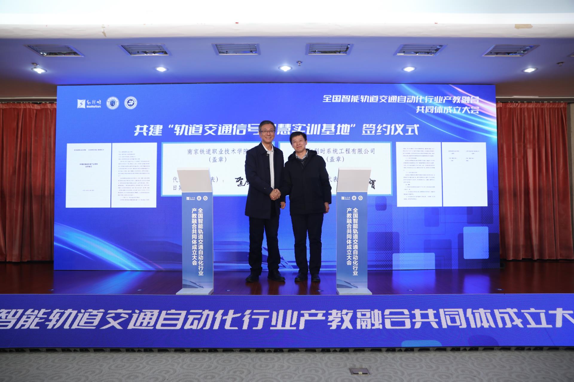 大會第一階段還進行了北京和利時系統工程有限公司與南京鐵道職業技術學院共建“軌道交通信號智慧實訓基地”簽約儀式,在與會嘉賓的見證下,北和公司總裁李智,南京鐵職院黨委書記賀興初共同簽署了校企合作協議。