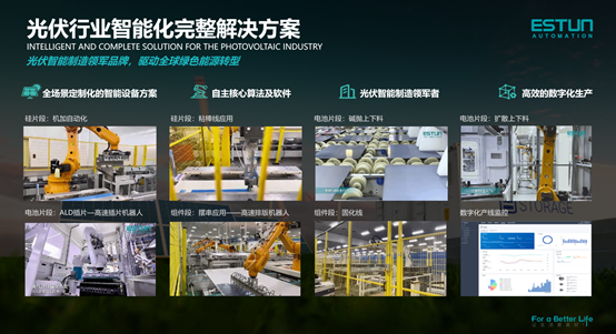 近日,埃斯頓“光伏排版工業機器人”入選工信部第八批制造業單項冠軍企業名單,這是埃斯頓繼獲得國家級專精特新“小巨人”稱號之后的又一殊榮。聚焦光伏全產業鏈應用工藝,埃斯頓深耕細作、圍繞硅晶、電池片、光伏組件各工藝段智能制造需求,打造光伏行業智能化完整解決方案。