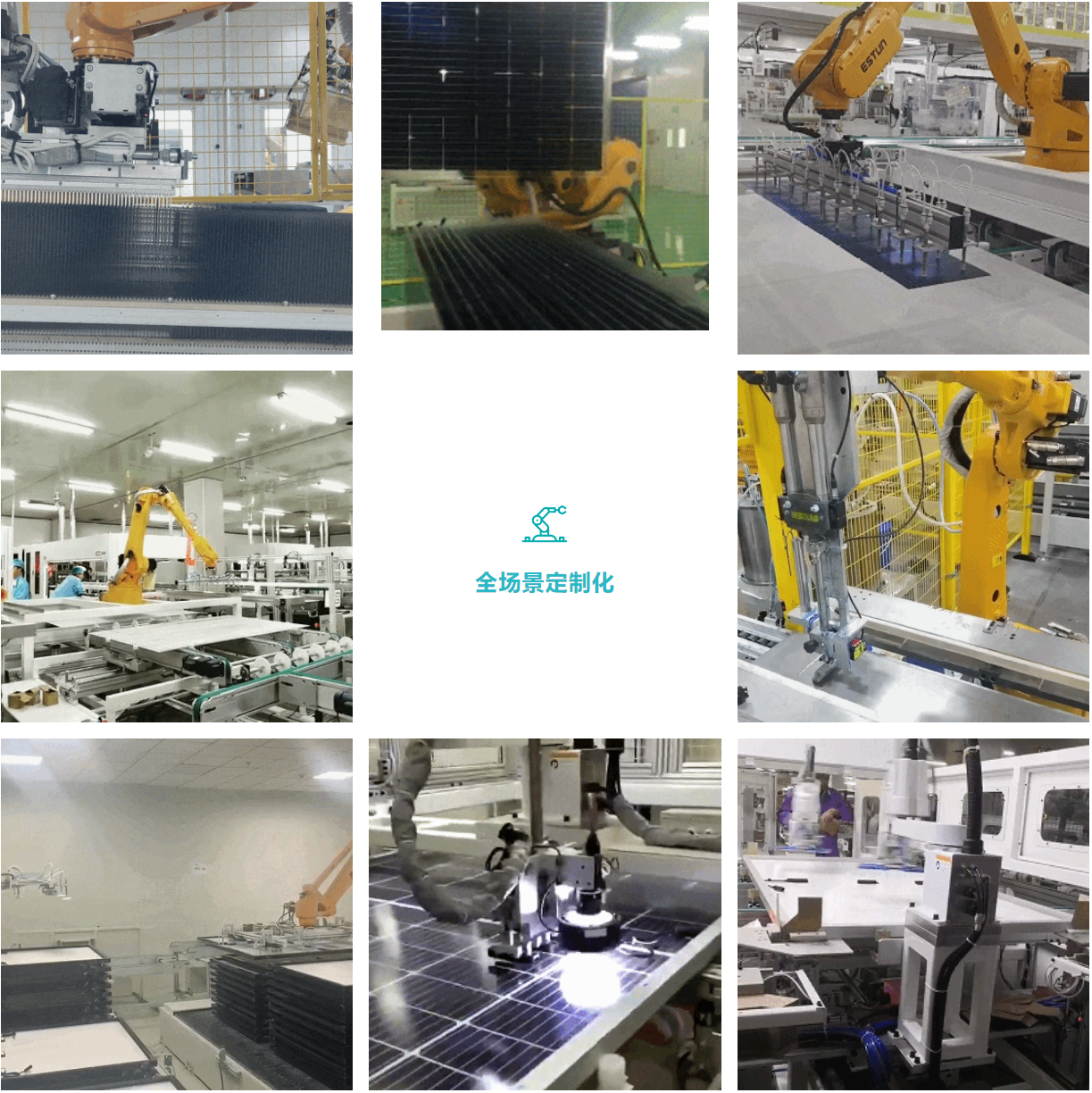 埃斯頓機器人賦能光伏全產業鏈智能制造 面向光伏行業,埃斯頓已和超過100+光伏企業達成緊密合作,全產業鏈智能制造完整解決方案應用于光伏各個工藝段,為光伏行業及應用提供智能化完整解決方案,用中國技術引領光伏行業蓬勃發展。 埃斯頓深耕光伏多年,熟悉硅料硅片、電池片到封裝段的每段工序,幫助客戶實現機器人自動化提升的同時,針對對難點工序進行高價值產品定制,突破應用難點,實現光伏行業全工藝鏈的產線覆蓋。 在硅棒搬運工藝段,針對大尺寸、硅棒搬運、涂膠等工藝要求,采用埃斯頓ER220B-2650/ER280-3200/ER350-3300等重負載六軸機器人,結合高抗干擾優勢,實現高節拍、高穩定、多工位解決方案,兼容182mm或210mm不同截面硅棒加工,滿足不同工種不同負載的生產需要。 在電池片加工領域,埃斯頓采用ER20B-1745-PV/ER28B-1800-PV光伏專業機器人,能夠精準而穩定地完成花籃搬運工作,達到高產能、低碎片率的要求。埃斯頓ER20B-1745-PV光伏花籃搬運專用機器人,針對花籃搬運應用高節拍、高慣量需求開發,高精度配合振動抑制功能,有效降低碎片率,高慣量手腕可兼容182/210mm的電池片,滿足多種場景、多工序段的使用需求。 在電池片插片領域,應對電池片越來越薄、尺寸越來越大的發展趨勢,埃斯頓針對ALD插片定制了ER35B-1810-LI機器人;針對PE插片推出了UNO-15-1430-HP機器人,單次循環周期搬運34片電池片。通過全新的關鍵件選型+剛性本體設計+振動抑制算法,進而提高了產品精度,從而滿足插片應用。同時,全軸剛性傳動,搭載先進的動力學模型,實現全局內最優加減速規劃以及精度保障,可有效防止電池片劃傷風險。 工博會視頻 在電池片排版領域,埃斯頓針對光伏行業用戶需求,正向研發ER20B/10-2010-HI高速大慣量機器人,搭配高精度視覺系統,用于組件電池串敷設。搭配自主開發的排版專用軟件包,10分鐘輕松切換版型,單串節拍可達3.2s/串,生產效率全球領先,助力光伏電池企業串排版工序段產線稼動率提升至98%以上。超大慣量,2010mm超長臂展,輕松兼容各類版型。采用視控一體化方案,示教盒端操作視覺,調試更方便。采用本機通信方式,通信延時降低30%,解決了光伏企業在產品切換中柔性化生產、高效率過渡的難題 聚焦雙碳目標,共謀綠色發展 在“碳達峰”與“碳中和”的大背景下,埃斯頓響應“雙碳”目標,保持“先發制勝”優勢,布局新能源細分市場,為新能源產業的綠色發展注入新的活力。全球范圍內,2023年埃斯頓光伏智能產線參與減碳2.8億噸(No.1),助力企業實現無人化生產與自動化改造,從而提升光伏整體產線的智能化水平,降低企業運營成本,助力光伏行業降本增效。 埃斯頓提供全場景定制化的智能設備方案,搭配自主核心算法及軟件,打造光伏智能制造領軍品牌,驅動全球綠色能源轉型。埃斯頓光伏排版專用機器人不僅為光伏產業帶來革命性的變革,也為全球制造業的綠色轉型提供了有力支持。在未來,埃斯頓將繼續秉承綠色、節能的理念,不斷創新技術,為全球合租伙伴提供更優質、更智能的制造解決方案,共同推動綠色制造事業的發展。 數字智能產線,打造精益管理系統 當前,數字化是制造業轉型升級的重要途徑和必由之路,也是未來制造業發展的趨勢和方向。埃斯頓在光伏行業打造數字化完整解決方案,在生產運營的全部業務環節為客戶提供價值。 埃斯頓光伏數字化產線,搭建智能化生產系統-E-PCS系統,提供計劃和工單管理,生產工藝數據管理,物料管理,AGV管理,質量管理,遠程維護,設備健康度檢測,設備績效透明化,產線精益分析,數字孿生等全流程在線檢測和管理體系,邊緣計算模塊協同E-Noesis工業數字化平臺,帶來精準直觀的設備管理,精益智能的生產過程管理以及快速便捷的售后服務,可以為企業快速搭建出屬于自己的輕量化精益管理平臺。 基于自主核心競爭力,埃斯頓將持續發揮產業鏈龍頭企業作用,整合優質資源,帶動產業鏈上下游發展,整合和聚焦行業優勢資源,為光伏行業提供“機器人+”智能化解決方案,構建全球智能制造產業新動力。