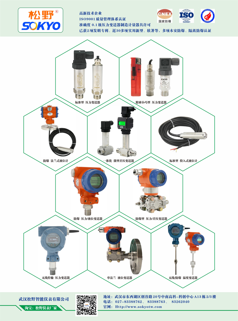 武漢松野智能儀表有限公司成立于2005年,位于長江中游九省通衢之地--湖北武漢主要。公司主要致力于防爆壓力變送器、帶通訊壓力變送器、壓力變送器、液位計、溫度傳感器、電動執行器、多功能電力儀表、微機綜合保護裝置、信號隔離器、流量計等測控產品的研發、生產、銷售和服務。并承接自動化成套工程的設計和安裝,為客戶提供全系列的工業自動化產品及工控方案。