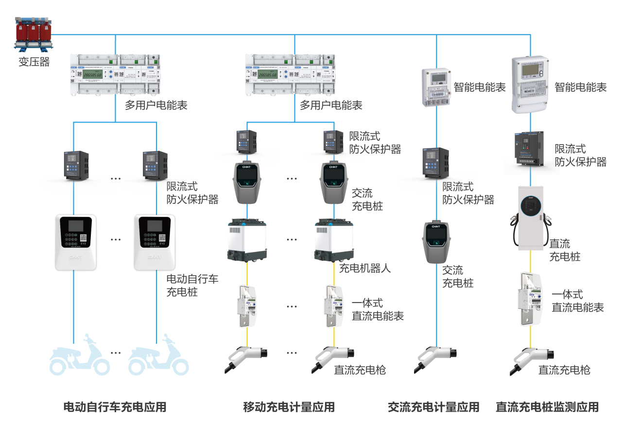 充電樁解決方案專為充電場景設計,產品分為交流計量產品和直流計量產品。其中,交流計量產品可本地和遠程控制,直流計量產品采用一體化設計,節省空間,也可搭載端子溫度監測模塊,實時監測溫度。