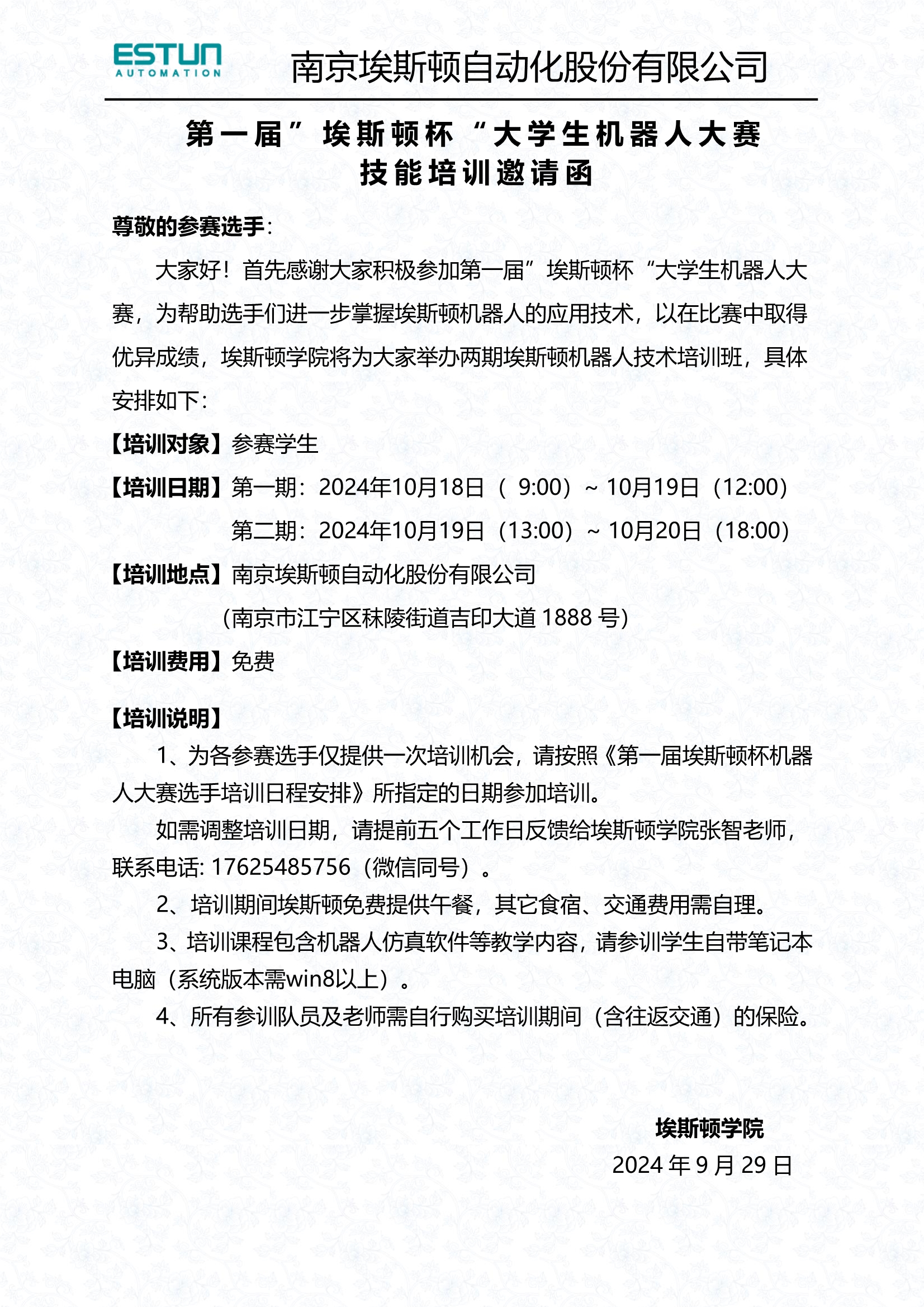第一屆“埃斯頓杯”大學生機器人大賽技能培訓通知