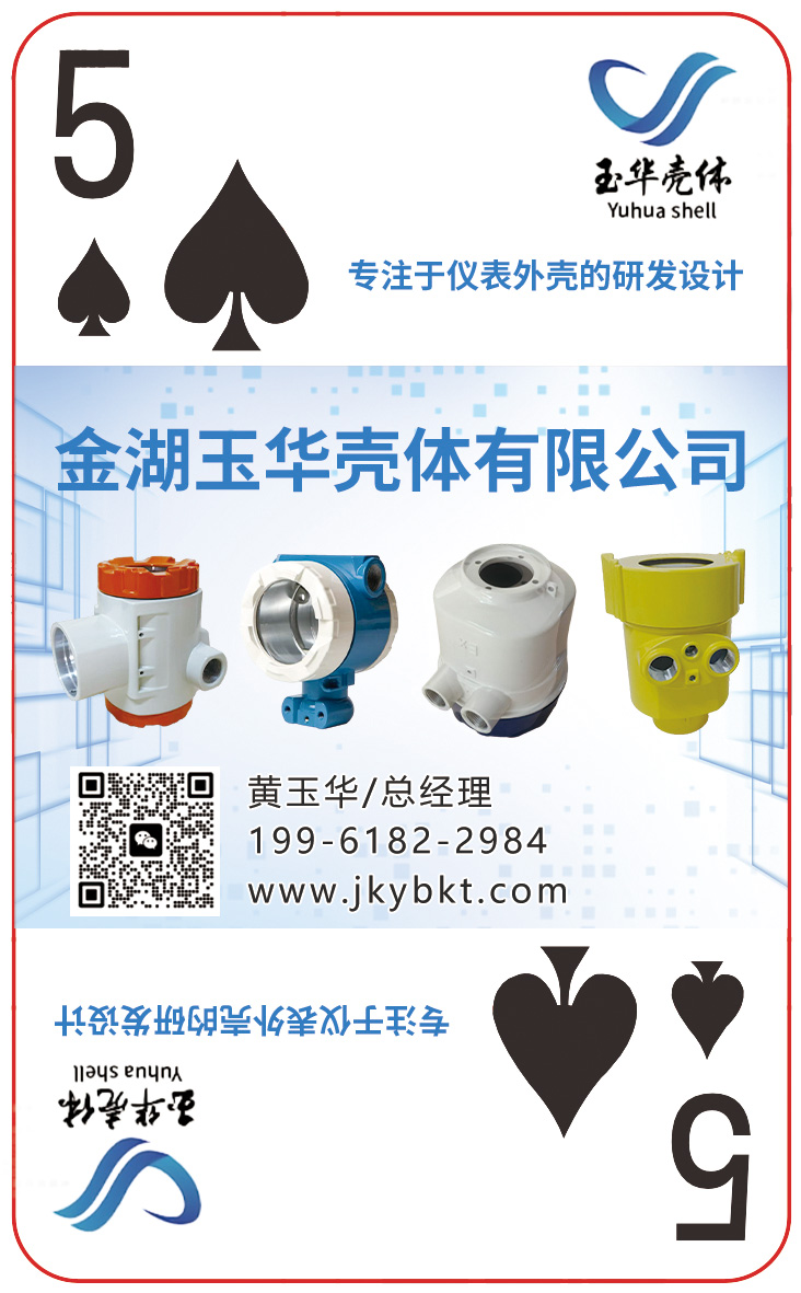 此次金湖玉華殼體有限公司積極認領黑桃 5,不僅體現了公司對《2025 圖頁網儀表行業摜蛋撲克牌》活動的高度認同和支持,更是展現了其積極開放、樂于分享、善于協同的企業精神。在這個需要高度協同的年代,金湖玉華殼體有限公司深知合作與共享的重要性,通過參與此次活動,與其他 53 家廠商共同推廣,借助圖頁網《儀表與測量控制》一年 40 多場展會發行的契機,將撲克牌作為禮品發送到水處理展、環博會、世環會、石油化工展、多國儀表展、上海傳感器展、自動化展等展會的專業負責人手中,覆蓋了儀表用戶行業,使公司品牌得到了更廣泛的傳播和提升,為公司帶來了更多的發展機遇和潛在訂單。