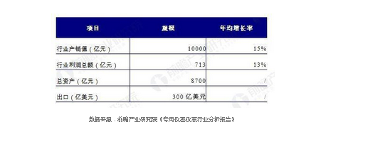 “十三五”儀器儀表行業(yè)前景預(yù)測(單位:億元,%)