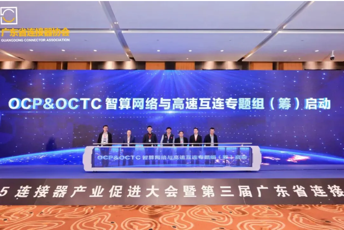 大會上“OCP&OCTC 智算網絡與高速互連專題組(籌)”正式啟動,OCTC秘書長/中國電子技術標準化研究院信息技術研究中心硬件研究室主任陳海、OCP中國社區負責人葉毓睿、廣東省連接器協會秘書長梁宇彤、中航光電科技股份有限公司事業部副總經理周國奇、慶虹電子(蘇州)有限公司FAE總監陳宣豪、維峰電子(廣東)股份有限公司董事長李文化、江蘇安瀾萬錦電子股份有限公司副總經理黃俊出席啟動儀式。