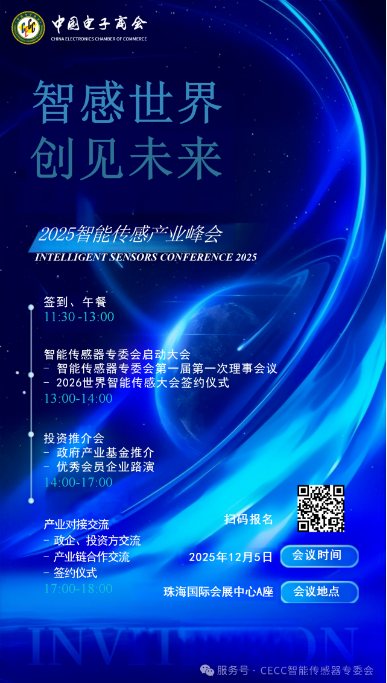 025年12月5日,中國電子商會智能傳感器專業委員會第一屆一次理事會會議在熱烈氛圍中圓滿召開。本次會議匯聚了智能傳感器領域的頂尖專家、企業領袖、知名投資機構以及多地政府領導出席,共同見證了這一行業重要時刻。