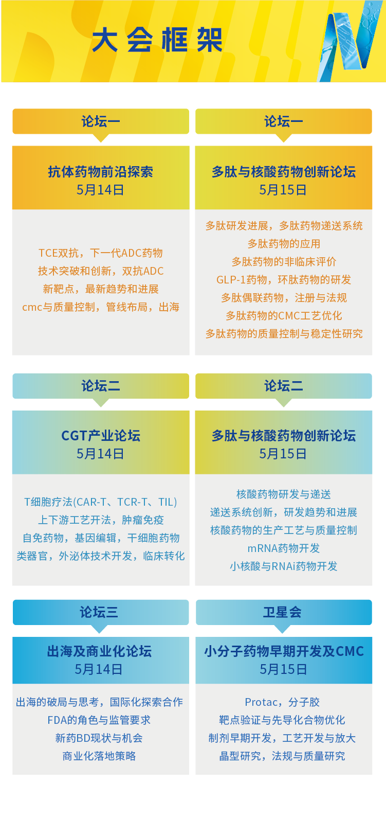 參加本次大會,您將一次性縱覽新藥研發最前沿的五大黃金賽道——CGT、新型抗體、mRNA與小核酸、干細胞與外泌體的突破性進展。我們期待與各位同仁一道,洞察先機,共話未來,攜手推動中國乃至全球生物醫藥產業在這波瀾壯闊的新浪潮中,穩立潮頭,行穩致遠。