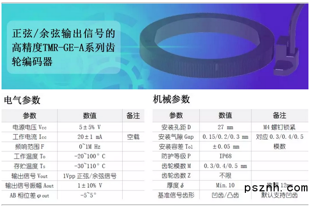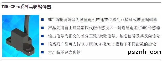 中國張家港2018年6月17日電 -- 專業的隧道磁阻(TMR)傳感器領先供應商江蘇多維科技有限公司(MultiDimension Technology Co., Ltd., MDT)日前推出正弦/余弦輸出信號的高精度TMR齒輪編碼器TMR-GE-A系列。該系列產品包括TMR-GE-A-03、TMR-GE-A-04和TMR-GE-A-05非接觸式增量磁編碼器,分別應用于0.3、0.4和0.5模數的齒輪,輸出信號為高質量的1Vpp差分弦波信號,適用于數控機床、能源和發電系統、鐵路交通和電梯等需要對電機轉速和位移進行精準測量的多種工業應用。