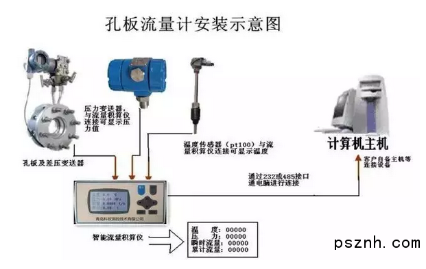 孔板流量計,就是在管道內部加裝一個中間開孔的圓板,然后測量蒸汽在孔板前后的壓力差,經過計算換算出蒸汽的流量。