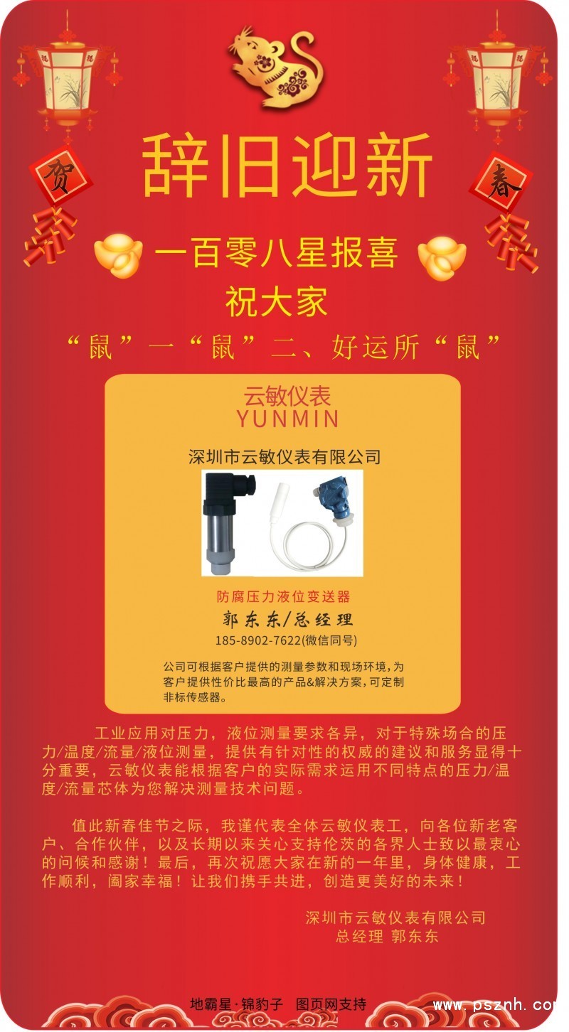 值此新春佳節之際,我謹代表全體云敏儀表工,向各位新老客戶、合作伙伴,以及長期以來關心支持倫茨的各界人士致以最衷心的問候和感謝!最后,再次祝愿大家在新的一年里,身體健康,工作順利,闔家幸福!讓我們攜手共進,創造更美好的未來!