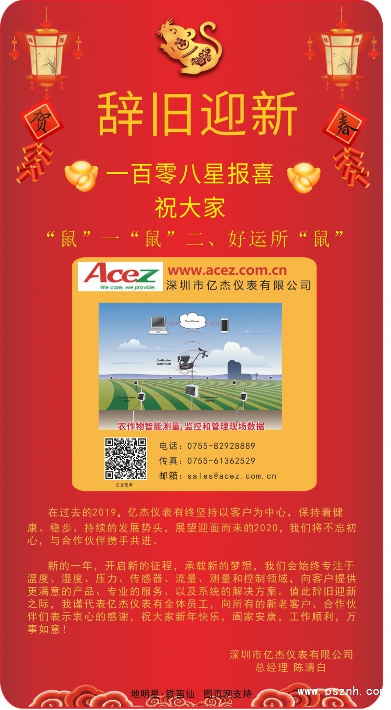 新的一年,開啟新的征程,承載新的夢想,我們會始終專注于溫度、濕度、壓力、傳感器、流量、測量和控制領域,向客戶提供更滿意的產品、專業的服務、以及系統的解決方案。值此辭舊迎新之際,我謹代表億杰儀表有全體員工,向所有的新老客戶、合作伙伴們表示衷心的感謝,祝大家新年快樂,闔家安康,工作順利,萬事如意!