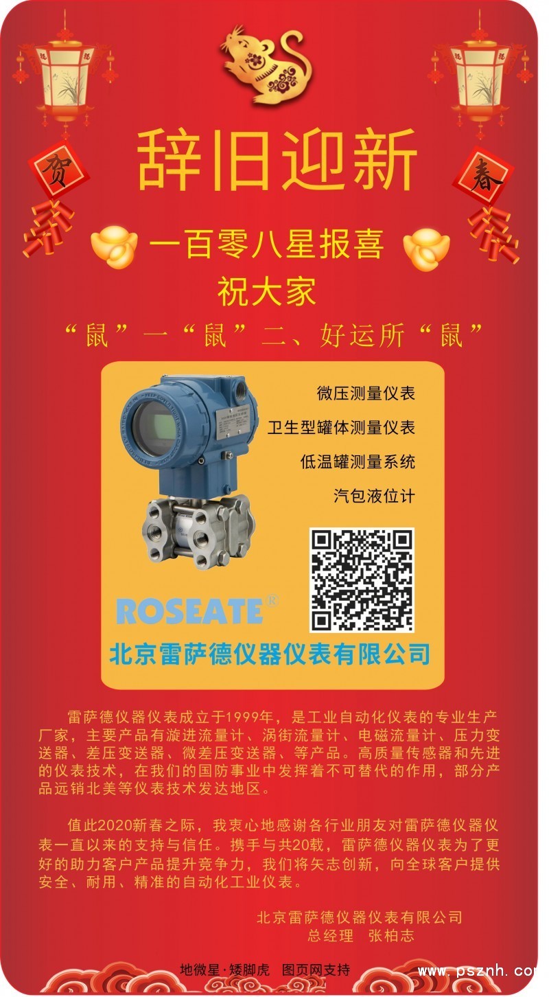 值此2020新春之際,我衷心地感謝各行業朋友對雷薩德儀器儀表一直以來的支持與信任。攜手與共20載,雷薩德儀器儀表為了更好的助力客戶產品提升競爭力,我們將矢志創新,向全球客戶提供安全、耐用、精準的自動化工業儀表。