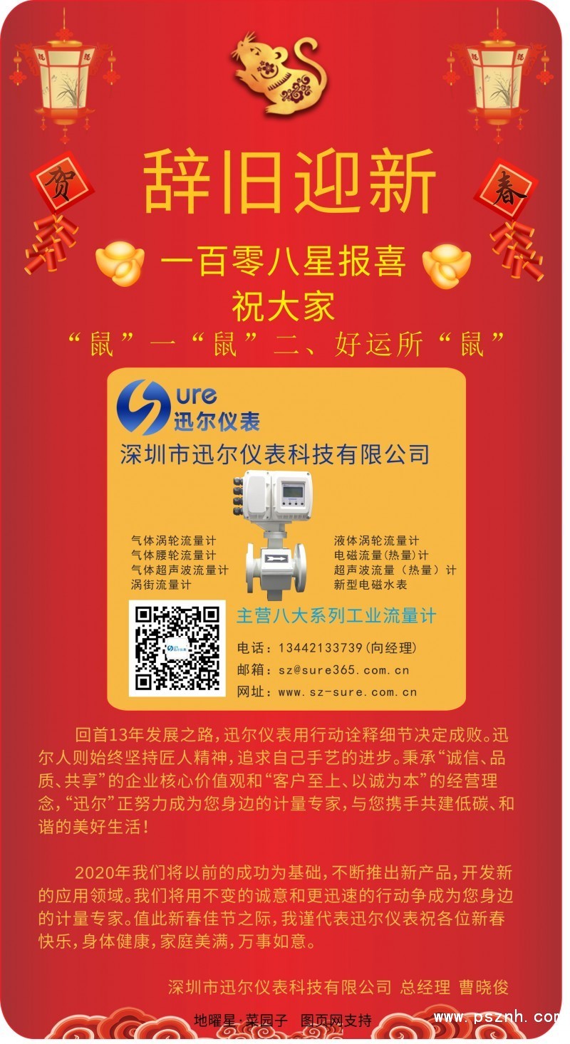 2020年我們將以前的成功為基礎,不斷推出新產品,開發(fā)新的應用領域。我們將用不變的誠意和更迅速的行動爭成為您身邊的計量專家。值此新春佳節(jié)之際,我謹代表迅爾儀表祝各位新春快樂,身體健康,家庭美滿,萬事如意。
