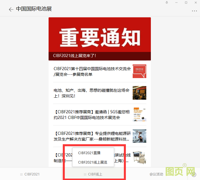圖1 CIBF微信公眾號直播導圖