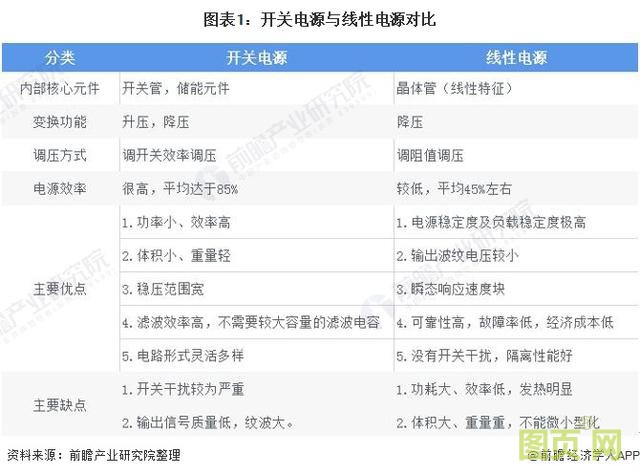 線性電源功率器件工作在線性狀態,功率器件一直在工作,導致功耗大、轉換效率低、發熱量大、體積大等缺點。而開關電源因其體積小,電流大,效率高等優點,在21世紀初逐漸取代了線性電源成為電源市場主流品類。