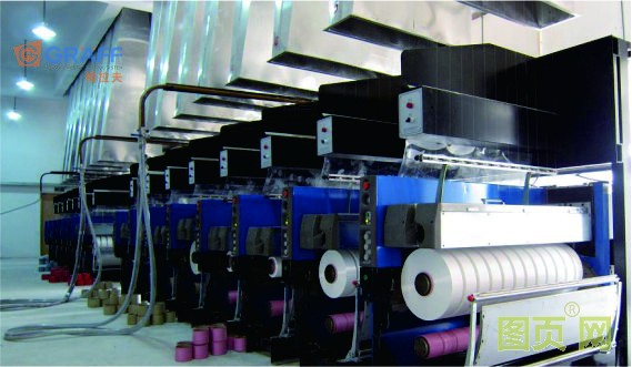 聚酯熔體從聚合經熔體輸送泵輸送到熔體過濾器,經過濾后到達紡絲間。熔體由增壓泵將其壓力提升到工藝要求壓力,再經冷卻器冷卻到工藝要求溫度,由五通閥(或三通閥)分配到各條生產線。熔體由生產線的熔體分配管均勻地分配到每個生產位的紡絲箱體中。另外,熔體管道中安裝有靜態混合器,起到熔體均勻混合的作用。熔體由紡絲箱體中的熔體計量泵準確計量送到紡絲組件,擠出噴絲板,形成熔體細流。熔體細流經側吹風冷卻固化而成為絲束。除側吹風冷卻工藝外,也有采用內環吹冷卻、外環吹冷卻和風筒吹風冷卻等不同的工藝。絲束經油嘴上油后進入卷繞(FDY一般采用油輪上油)。絲束經預網絡器、GR1和SR1、GR2和SR2、主網絡器,由卷繞機卷繞成FDY絲餅(巴馬格機型則是絲束經GR1、網絡器和GR2后由卷繞機卷繞成POY絲餅)。POY直接經外觀檢驗后包裝入庫,或送后紡加彈機加工;FDY在經染色后,再由外觀綜合判定后包裝入庫。