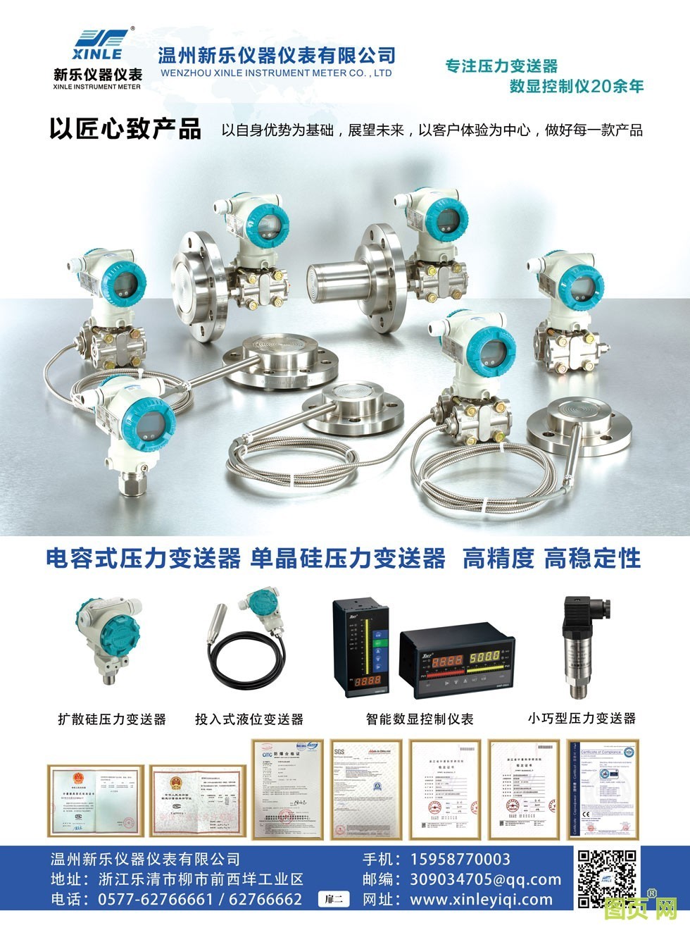 圖頁網(wǎng)旗下雙月刊《儀表與測量控制》成功出刊了!物聯(lián)網(wǎng)及傳感展為主題的特刊廣告廠商爆棚了,近六十多家企業(yè)選擇了它做品牌推廣。《儀表與測量控制》與圖頁網(wǎng)相互結(jié)合,掃描二維碼進(jìn)行關(guān)注,讓廠商主用戶的信息都能以圖文并茂的方式展現(xiàn)出來,讓人耳目一新。關(guān)注后就能保存《儀表與測量控制》雙月刊,電子版的廣告稿和企業(yè)畫冊可以隨時、隨地、隨心傳播,企業(yè)主也可以進(jìn)行修改和補(bǔ)充,方便之極。《儀表與測量控制》將在各大型展會進(jìn)行派發(fā).不僅每個收錄企業(yè)會收藏,采購商也將其視為行業(yè)采購工具書,專注壓力變送器數(shù)顯控制儀20余年溫州新樂儀器儀表有限公司表入駐《儀表與測量控制》2021年第5期之物聯(lián)網(wǎng)及傳感器展特刊。